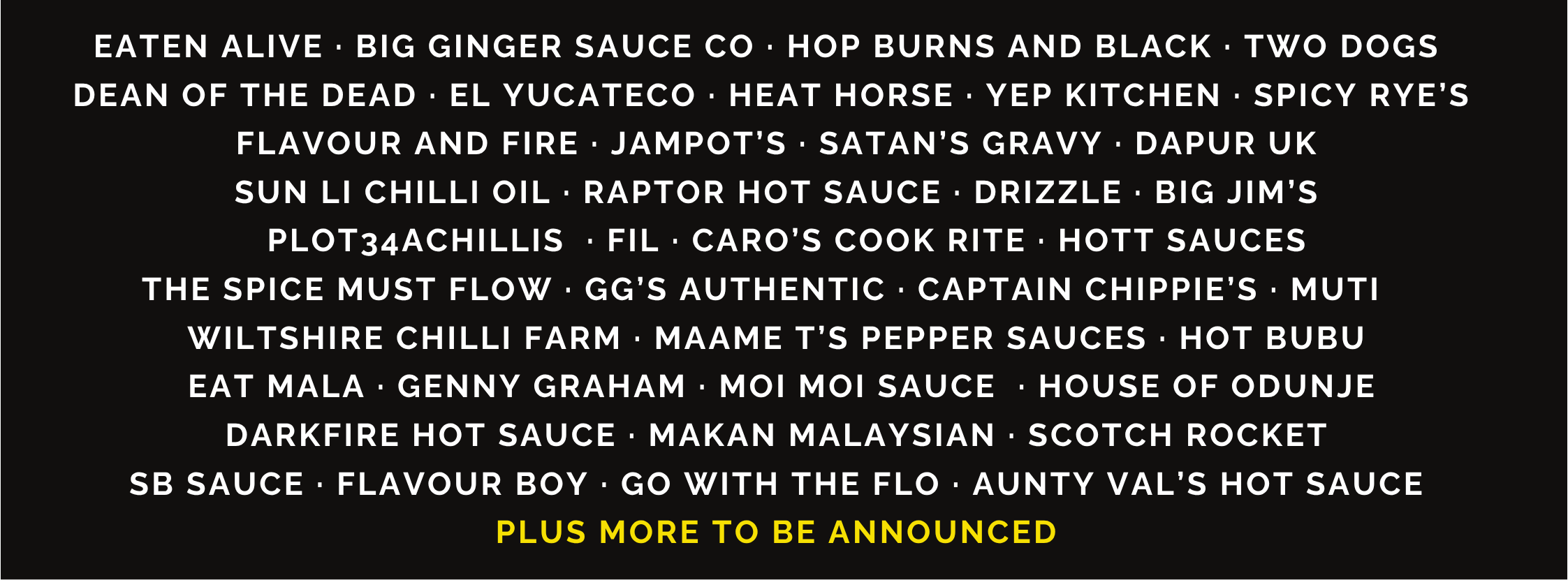 STREET FOOD POP UPS * CRAFT BEERS AND FROZEN MARGARITAS * HOP BURNS & BLACK PRESENT CHILLI KARAOKE * DJs * CHILLI FACE PAINTING * COMPETITIONS * HOT SAUCE TASTINGS
